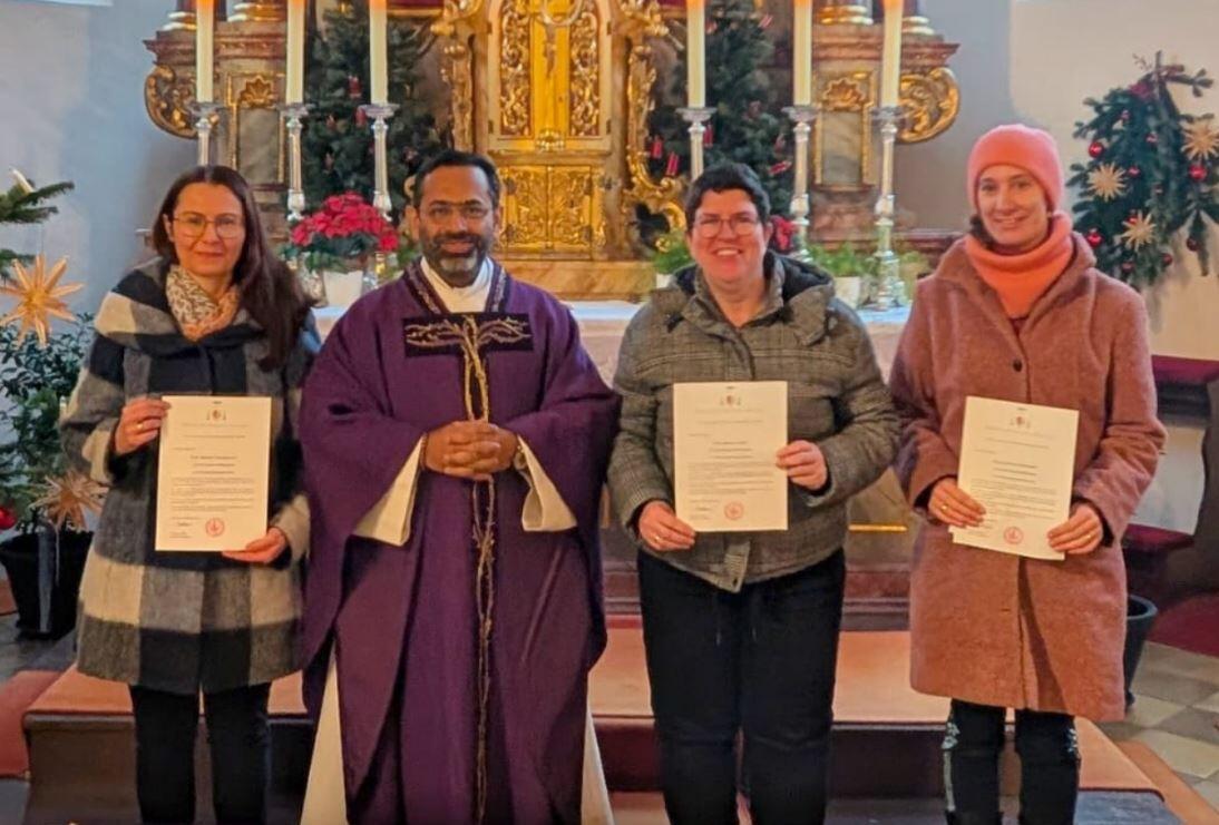 In einem feierlichen Rahmen durfte unsere Pfarrgemeinde am Sonntag, den 21. Dezember 2025 drei neue Kommunionhelferinnen begrüßen. Während des Gottesdienstes wurden ihnen die Ernennungsurkunden von Bischof Bertram überreicht.