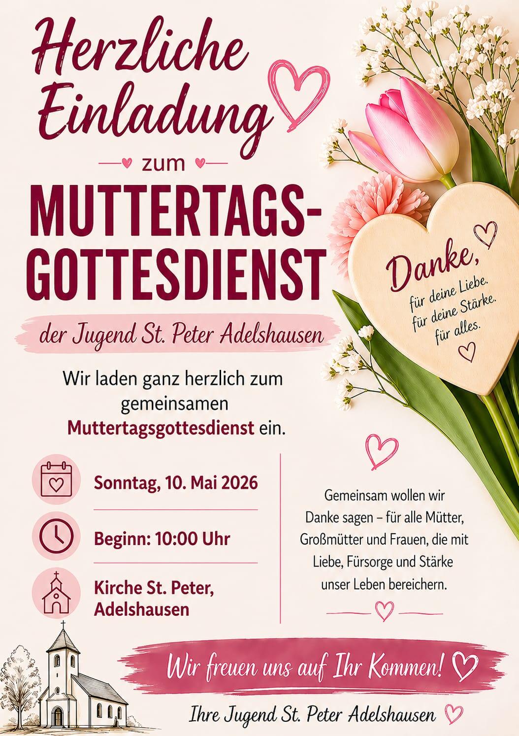 Muttertagsgottesdienst am 10.05.2026 um 10:00 Uhr ein.